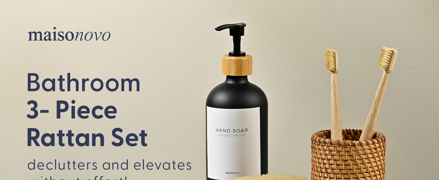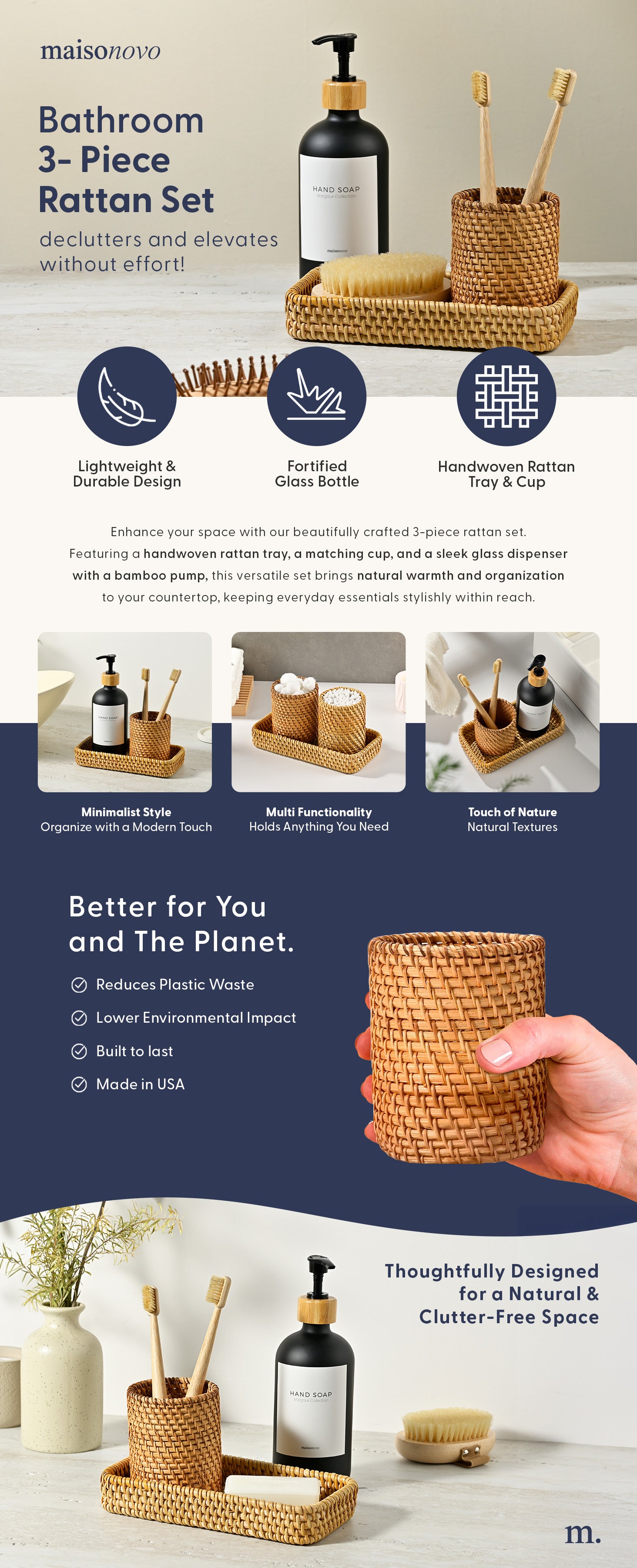 Handmade 3-Piece Rattan Bathroom Holder Set