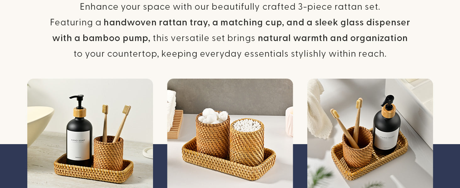 Versatile Style: Whether your decor is modern spa-inspired, coastal boho, or minimalist chic, this set works seamlessly.