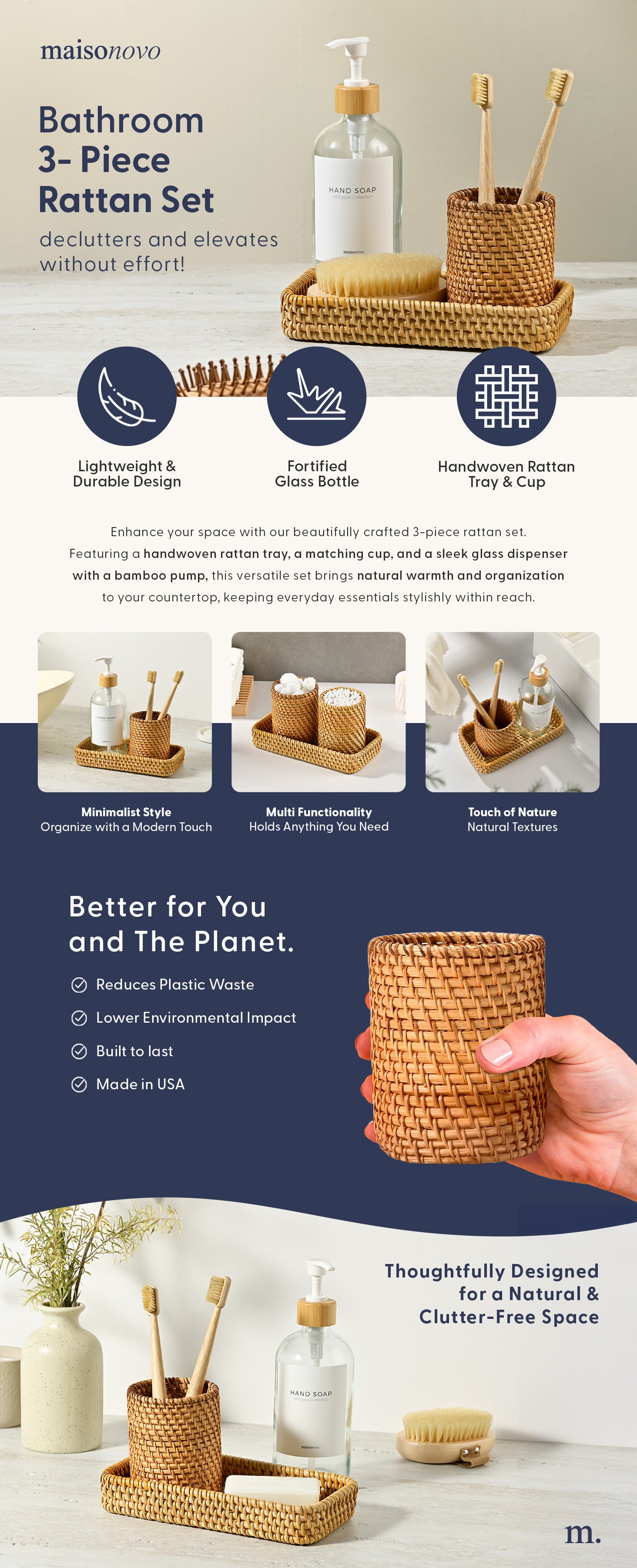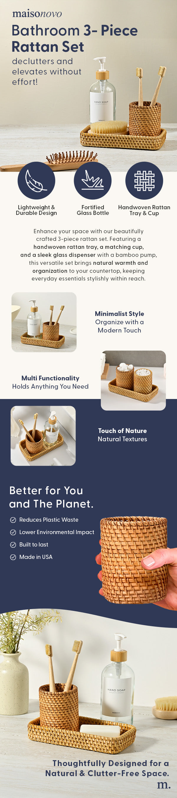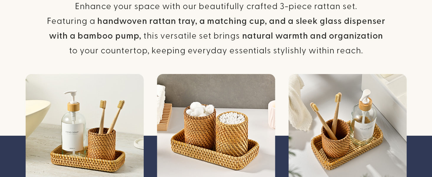 • Versatile Style: Whether your decor is modern spa-inspired, coastal boho, or minimalist chic, this set works seamlessly.