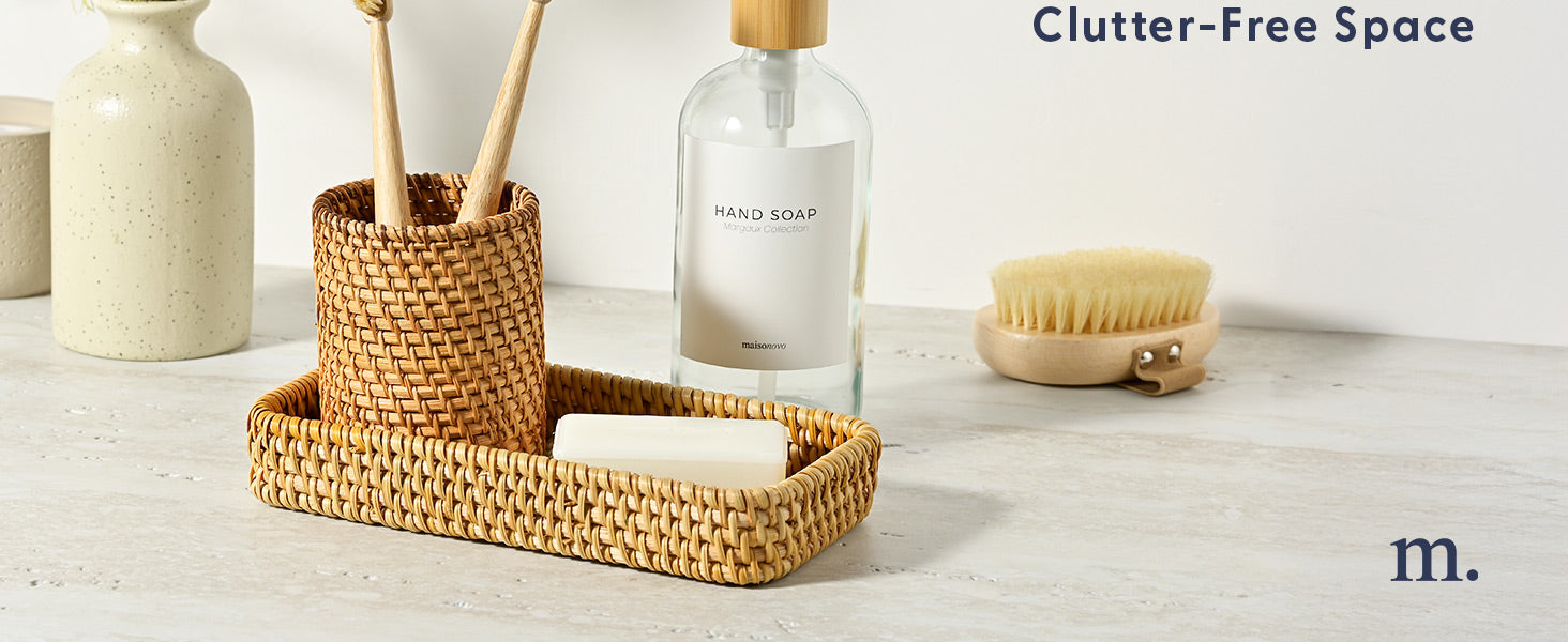 Handmade 3-Piece Rattan Bathroom Holder Set