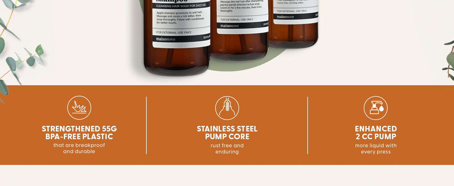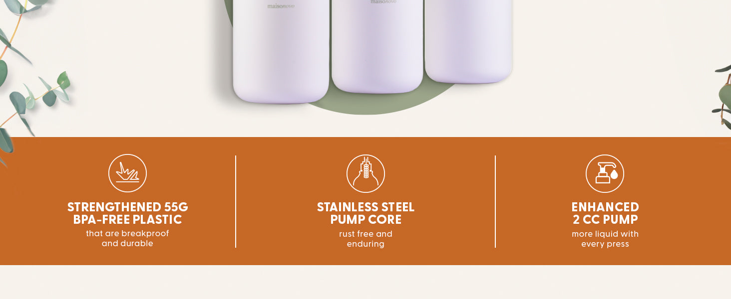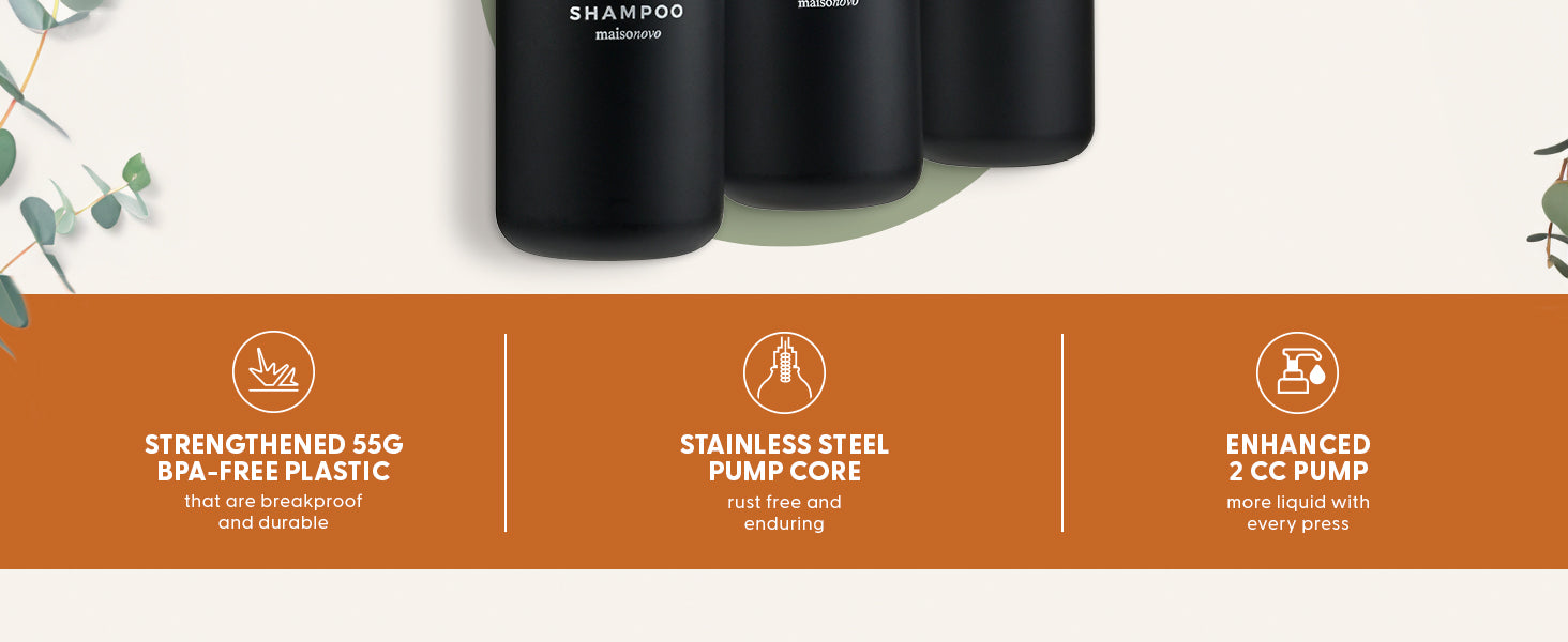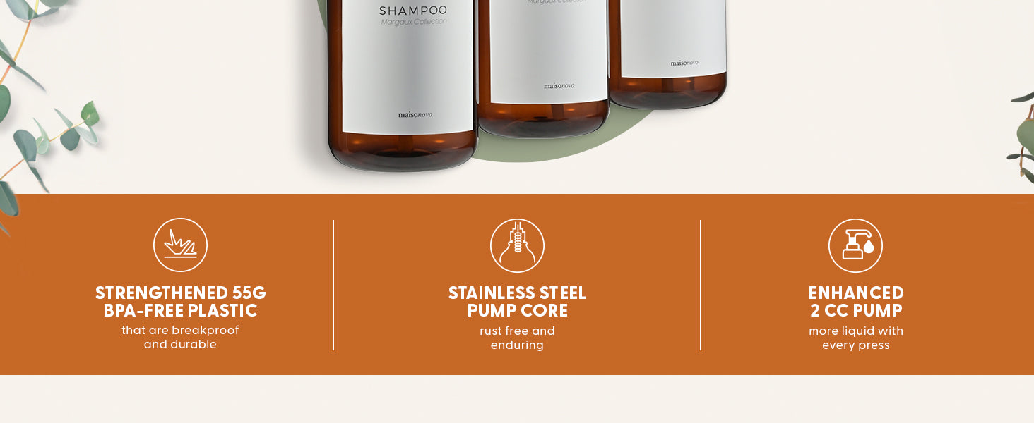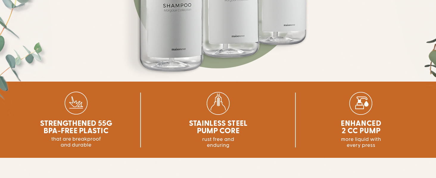 Maisonovo dispensers are designed with non-drip, clog-resistant pumps tested for over 10,000 presses. They dispense smoothly and cleanly, with no mess left behind.