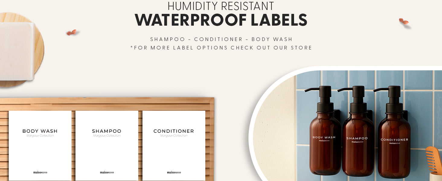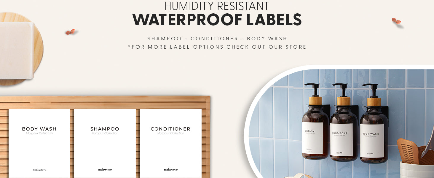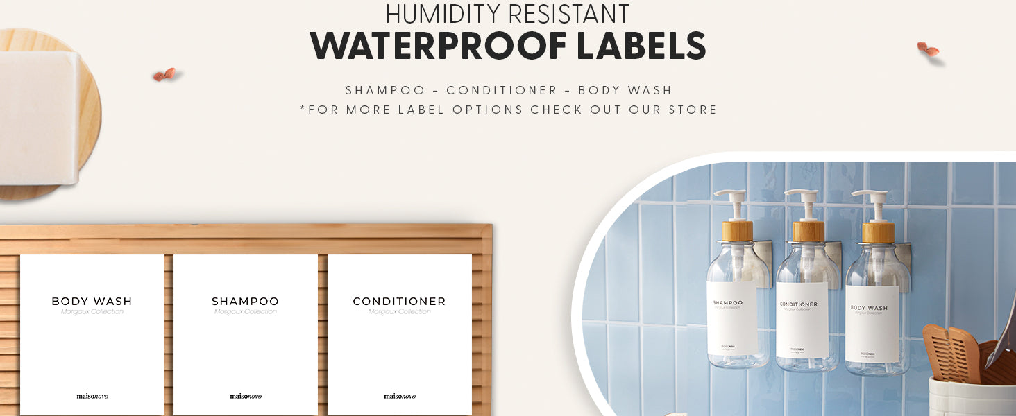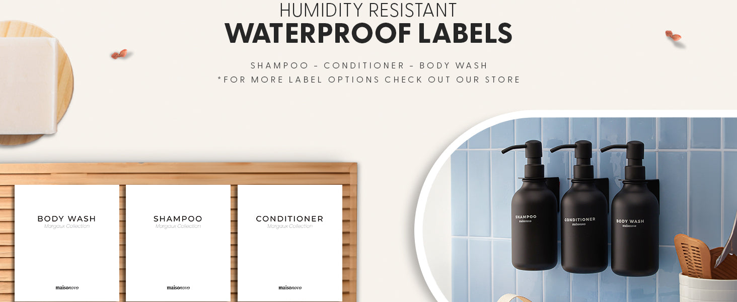 Each set comes with matching soap dispensers, stainless steel wall mounts with adhesive, complementary set of waterproof labels, and a silicone funnel for easy refill.