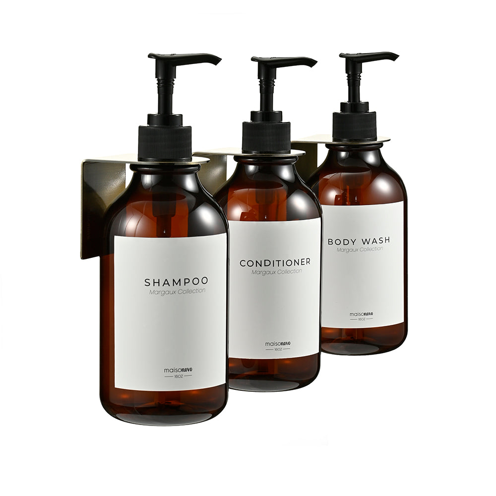 You can choose between Single, Double, or Triple sets depending on your routine and space. All sets include bottles, pumps, adhesive mounts, and labels.