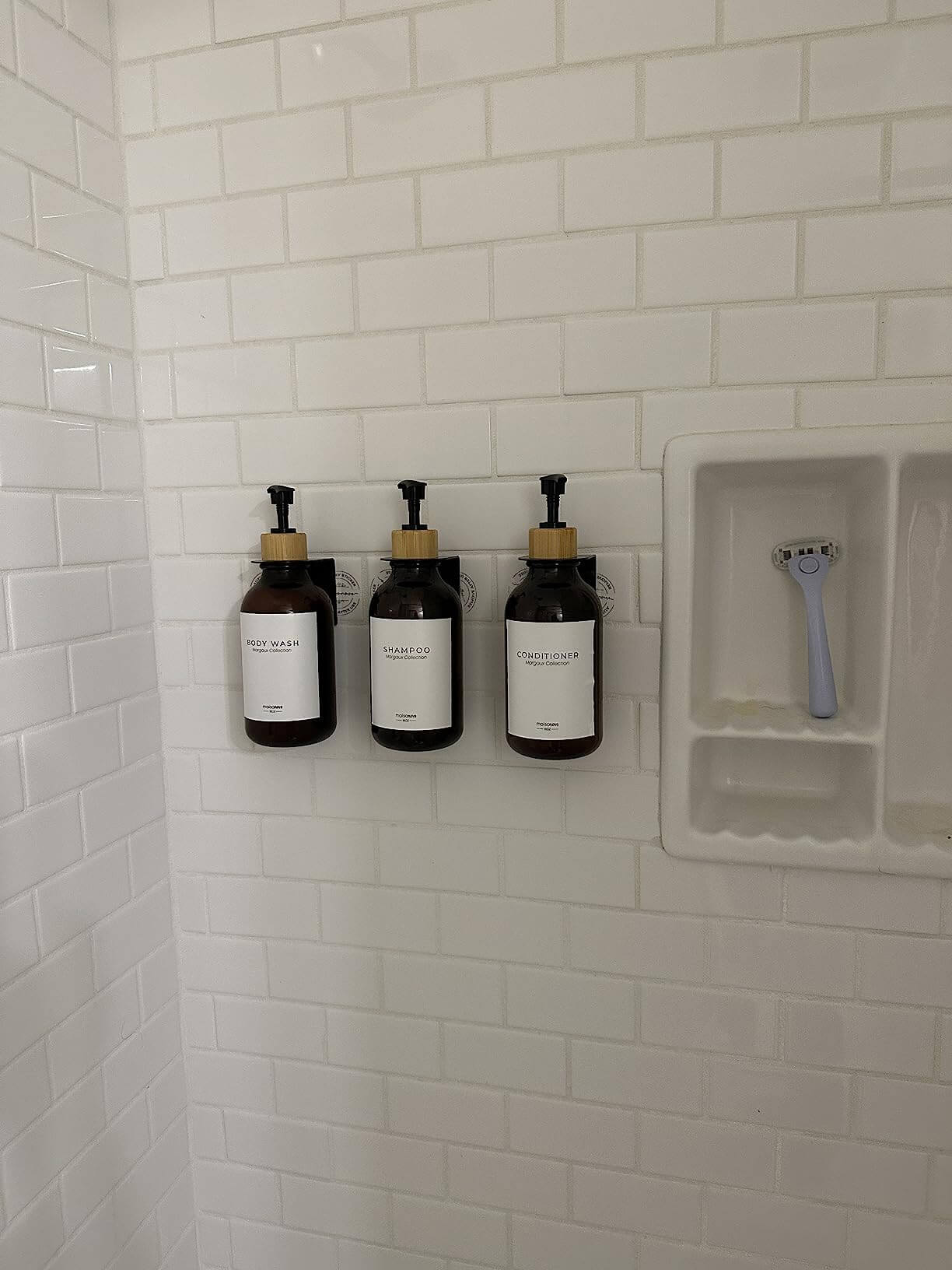 You can choose between Single, Double, or Triple sets depending on your routine and space. All sets include bottles, pumps, adhesive mounts, and labels.